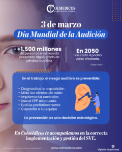 En Colmédicos, a través de nuestra unidad de prevención en salud, acompañamos a las organizaciones en el diseño e implementación de programas de conservación auditiva. Nuestro enfoque integral abarca desde el diagnóstico de ambientes ruidosos hasta audiometrías periódicas y capacitación continua para los equipos de trabajo.